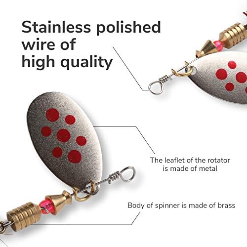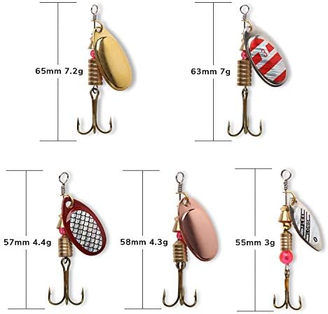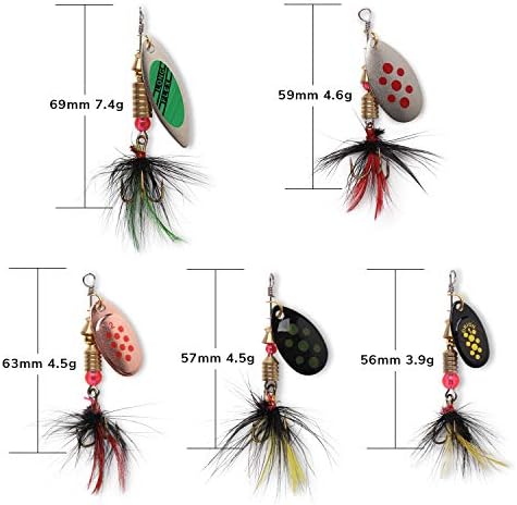 10pcs Fishing Lures,3 g– 7g capture a variety of fishes. Fishing Draws Set with Tackle Box, Easy to keep and bring. 10pcs high quality Holographic Spinner Draw package includes various brilliant colors and sizes. Life-like swimming actions are Irresistable to big wheel. The target fishes: Bass Salmon Walleye Steelhead Northern Pike.
