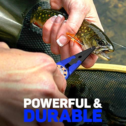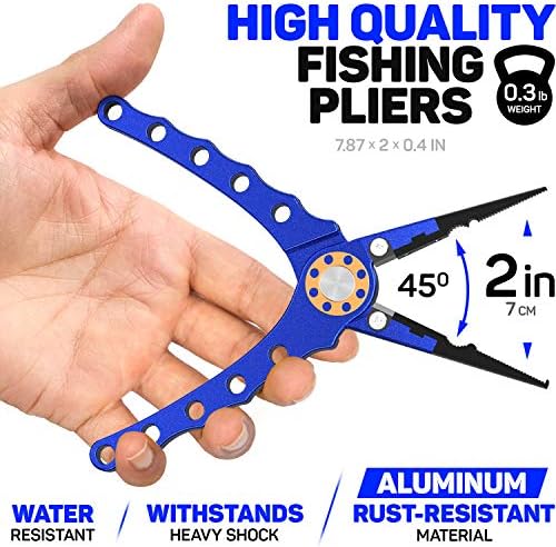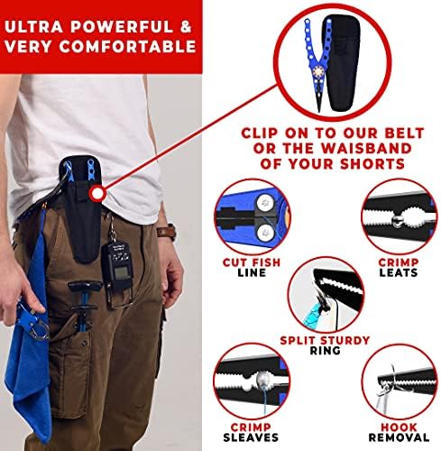 [POWERFUL FISHING PLIERS] – light and resilient fish pliers made from aluminum alloy. Multifunctional hook puller with split ring. Side scissors enable you to cut the line really near to the hook, with no trouble. Quickly connect the pliers to your belt, the set consists of a hassle-free fastener for trousers or shorts, and a spiral cable will avoid your pliers from falling overboard. Likewise, with the aid of a fish dehooker you will not do any damage to the fish if you choose to let it go