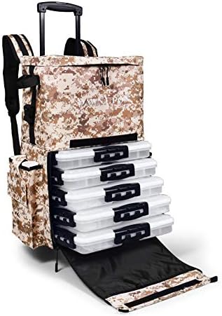 Included freight strap to safely strap additional equipment such as a cooler or another deal with box!Increased manage height to 36″ high! No flexing over to roll the bag, relocation along in convenience. Really Top quality, water resistant deal with boxes with personalized compartments. All deal with boxes are safely attached with hook and loop straps to guarantee no boxes come out when you do not desire them. All deal with boxes and their racks are totally detachable to bring other products for those non-fishing journeys for additional area listed below. Adjustable and bigger leading compartment. Hook and loop side walls permit you to form what size compartments you desire. Or totally eliminate the walls completely and fill it to the max with bigger products.