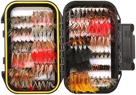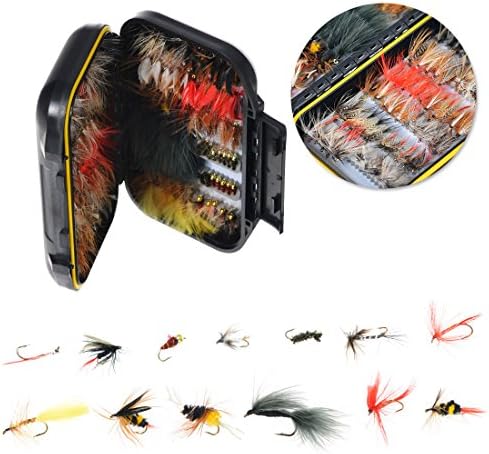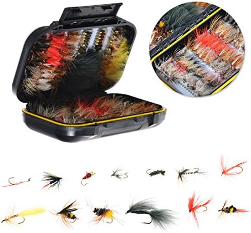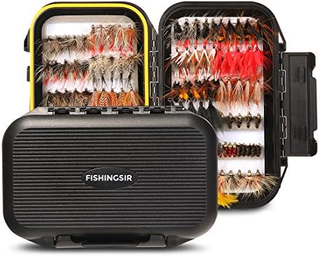 FISHINGSIR Fly Fishing Flies Kit – 64/100/110/120pcs Handmade Fly Fishing Lures – Dry/Wet Flies,Streamer, Nymph, Emerger with Waterproof Fly Box