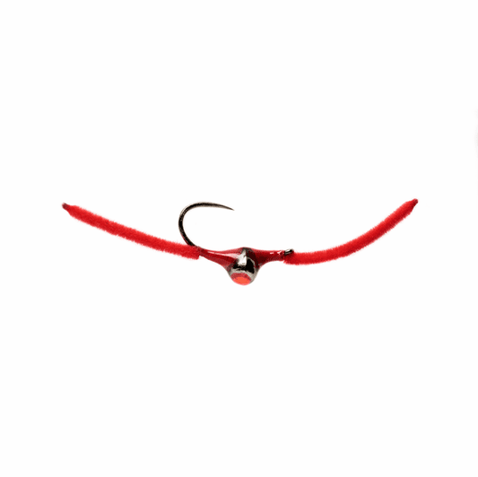 Croston’s Jigged Chenille Worm has actually been my guilty enjoyment recently. Fulling Mill’s take on a jigged San Juan will make sure to impress you. It is connected with an inverting bead in the center of the fly and includes an easy chenille body. The body is protected with UV resin for increased toughness. For rainy days or spring overflow this fly can’t be beat. It can be found in red, hot pink, and soft pink; all in size 14.