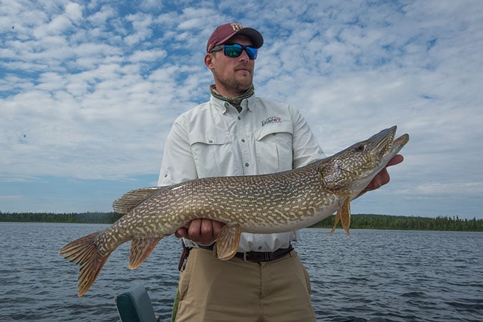 American anglers seeking to capture big wheel in Canada– such as this gorgeous pike from Wollaston Lake in Saskatchewan– will be more than welcome this summertime. Image: Sandy Hays