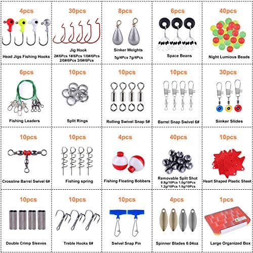 All-in-One Load- 263pcs fishing devices package gathers almost all devices consisting of Off Set Hooks/ Fishing Weights Sinkers/ Spinner Blades/ Fishing Drifting Bobbers/ Barrel Swivels/ Barrel Snap Swivels/ Sinker Slides/ 3 Method Cross-line Barrel Swivels/ Spinner Blades/ Split Rings/ Spring Twist Lock/ Split Shot Weights/ Fishing Beads/ Fishing Leaders/ Heart Shaped Plastic Sheet/ Double Crimp Sleeves/Space Beans and Fishing Tackle Box, ideal for all sorts of fishing condition.