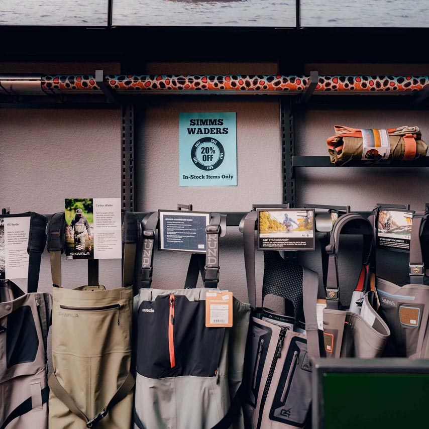 Simms waders on sale at Duranglers, in Durango, Colorado. Image: Will Warasila for Bloomberg Businessweek