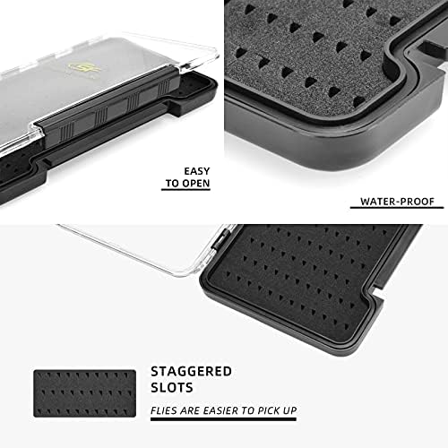 Clear High-density plastic snap-tight cover and high-density black slit foam to keep your flies protect. Fish tank Latch makes it water resistant to keep your flies dry.