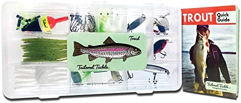 Package consists of 2.5″ Suspending Crankbait Silver, 1.5″ Crawdad Crankbait, 1.5″ Cricket Hopper Crankbait, 3/16 Oz Casting Spoon, 2x Plume Tail Spinner 1/4 Oz (Perch & & White), 1/8 Oz Brass Rattle Spinner, 1/8 Oz Vibrating Spinner, 4x Marabou Jig 1/16 Oz (White & & Chartreuse), 10x Trout Worms 3″ Green, 10 x Curl Tail Grubs 2.25″ White, 10 x Baitholder Hooks # 8, 3x Treble Hooks # 12, 2x Jig Head 1/16 Oz, 2x Jig Head 1/32 Oz, 4x Egg Sinker 1/4 Oz, 30 Split Shot Sinkers (5x # 7, 10x 3/0, 15x BB), 5/8″ Slip Bobber, 5x Barrel Rotates # 7, 5x Red Fishing Beads 6mm, 5x Slip Ties & & Beads. 99 Pieces inside a 9 x 4.5 x 1.25 In. take on box with 13 dividable compartments. Consists Of 18 Page Trout Fishing Reserve with chapters on how to fish every lure and piece of take on in the set, Leading 5 Trout Tips, Fishing for Trout in Lakes & & Ponds, Fishing for Trout in Rivers & & Streams, Trolling for Trout, Effectively Dealing With and Launching Trout, How to Fillet Trout, Trout Recognition Guide.