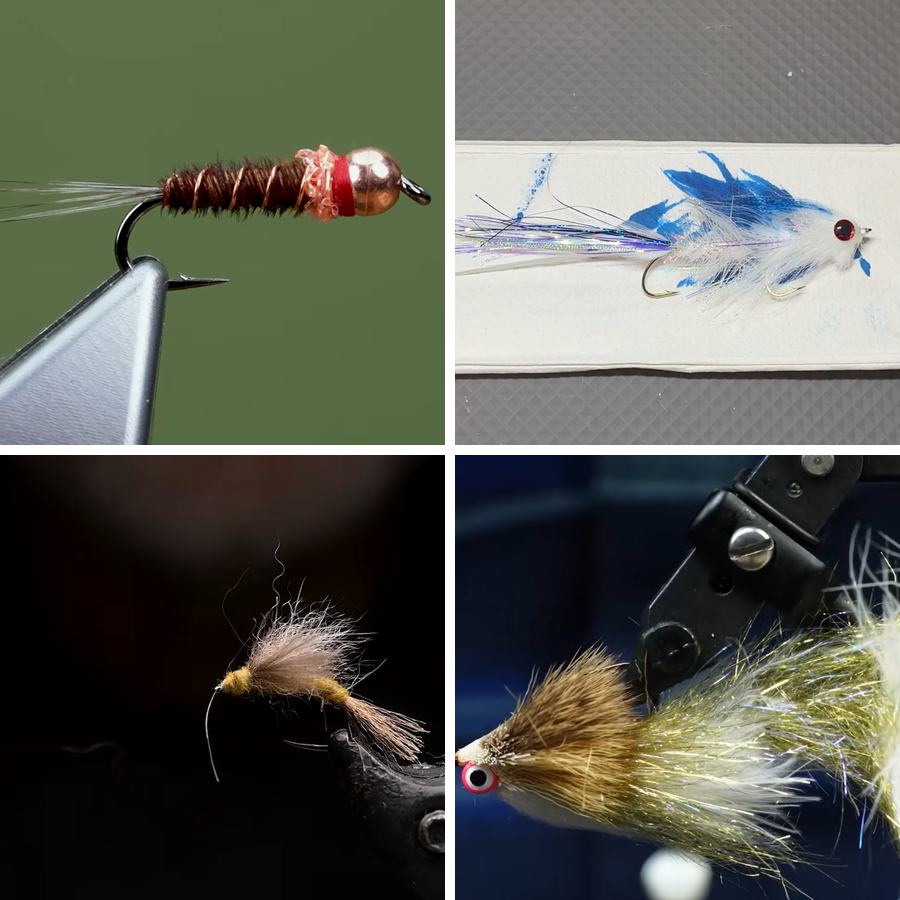 Today’s Tying Tuesday brings 4 patterns that cover major ground: Cheech’s updated Wedge Head Trout Slider, a scuba diver that darts and pulses; Rob Streeter’s Articulated Jerk Fly, developed to mimic the death-spiral of a passing away baitfish and crafted for warmwater carnage; Tom Rosenbauer’s Bunny Foot Emerger, a stealthily easy surface area movie pattern; and the ever-reliable Frenchie.